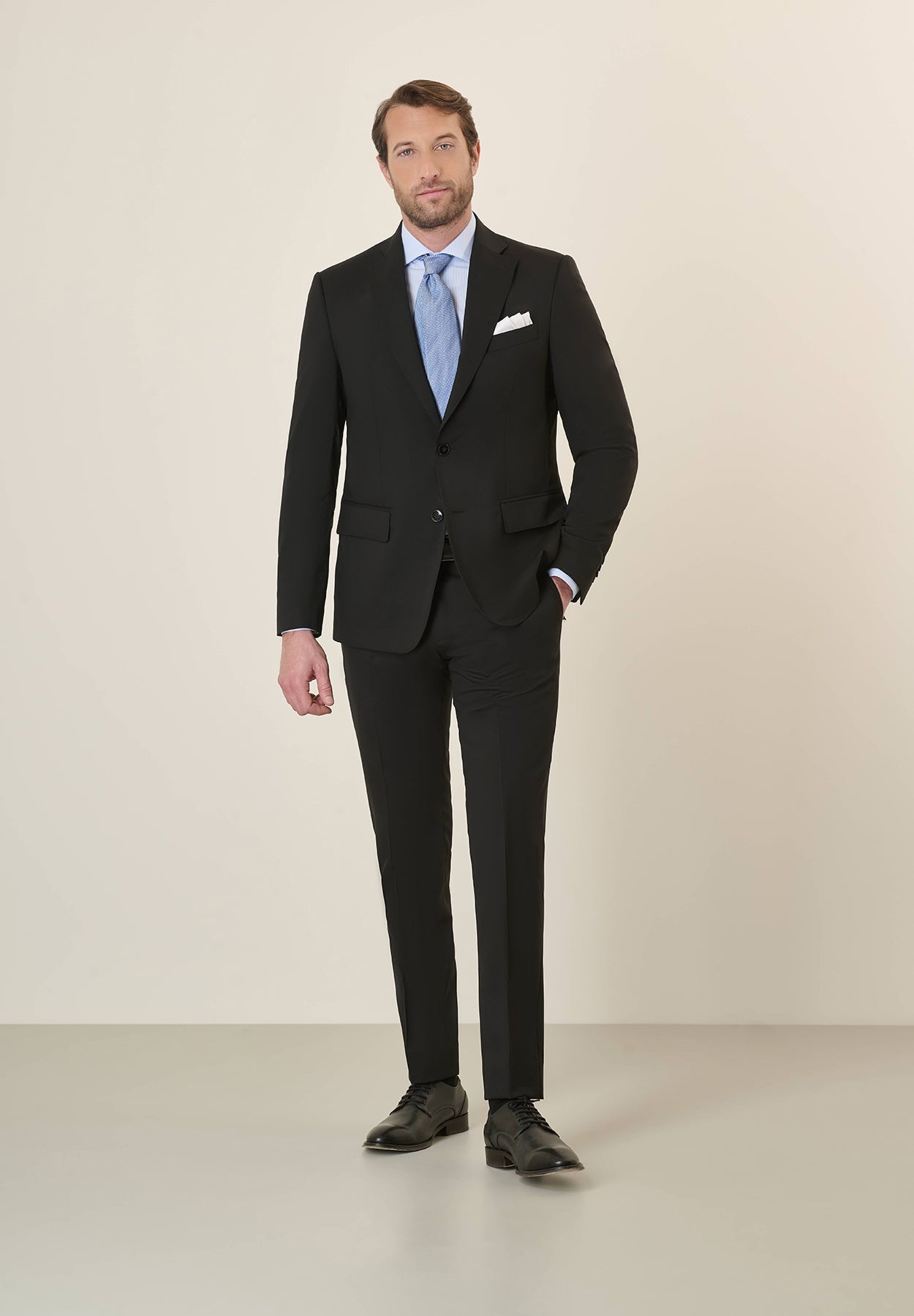 Black Suit In Stretch Virgin Wool Canvas, Custom Fit