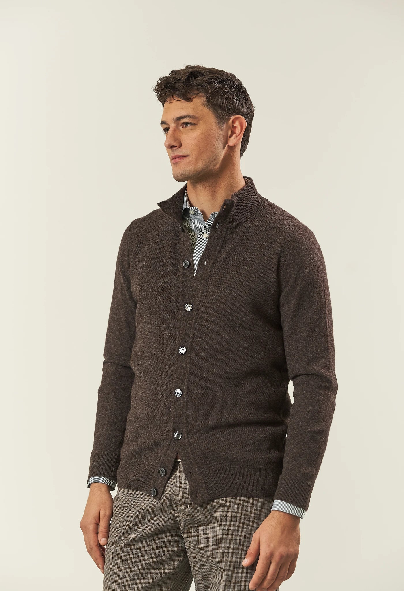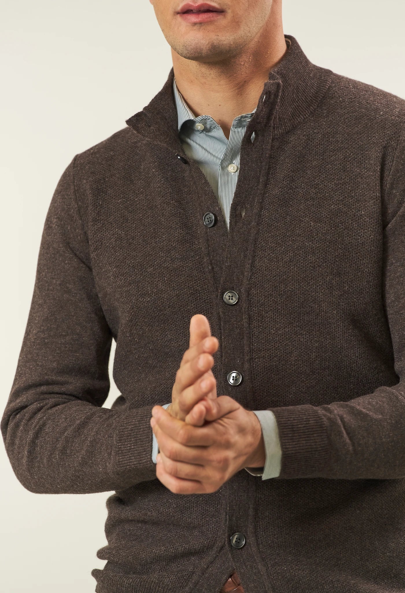 Brown rice grain wool blend jacket sweater