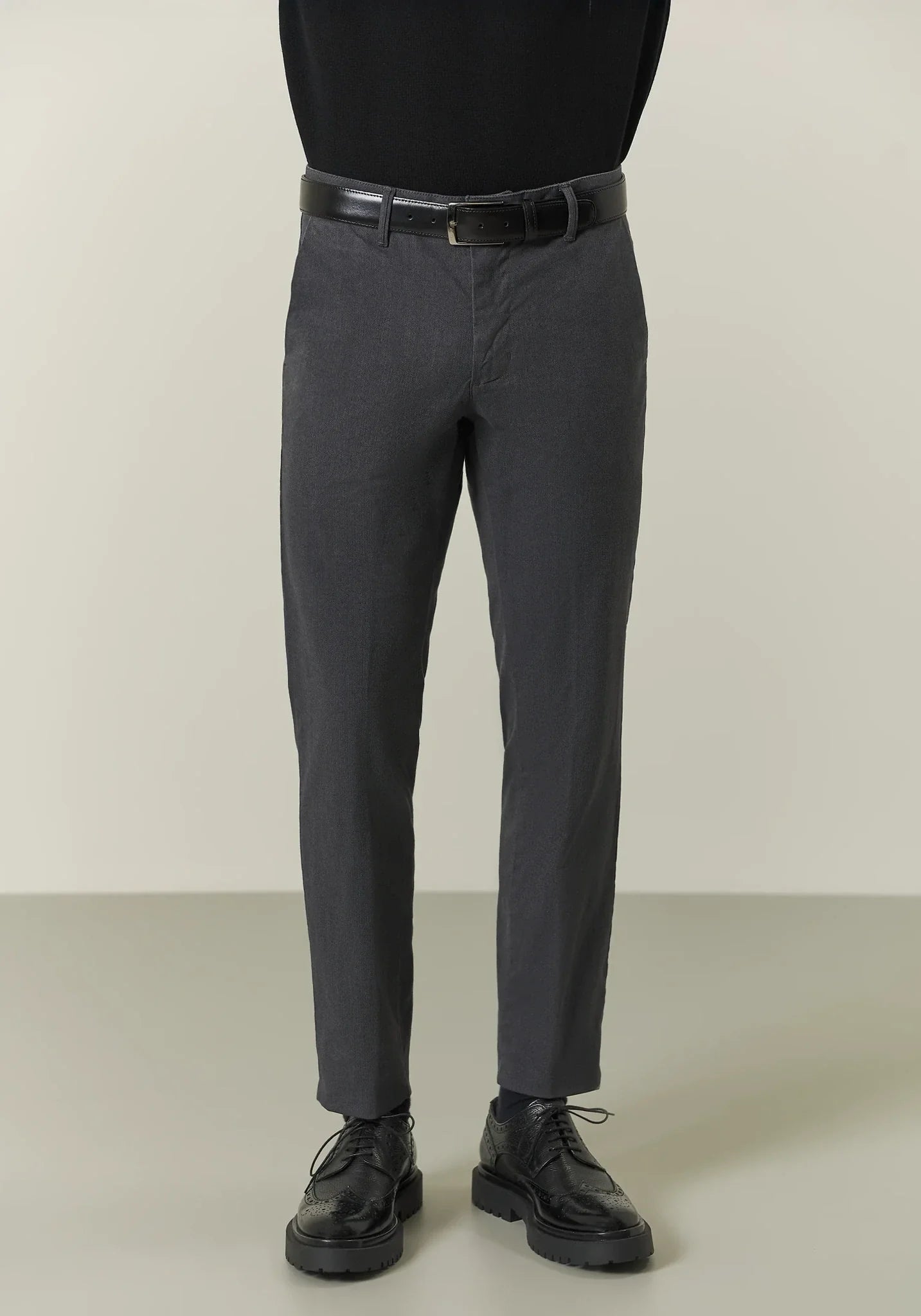 Slim-fit stretch cotton herringbone grey trousers