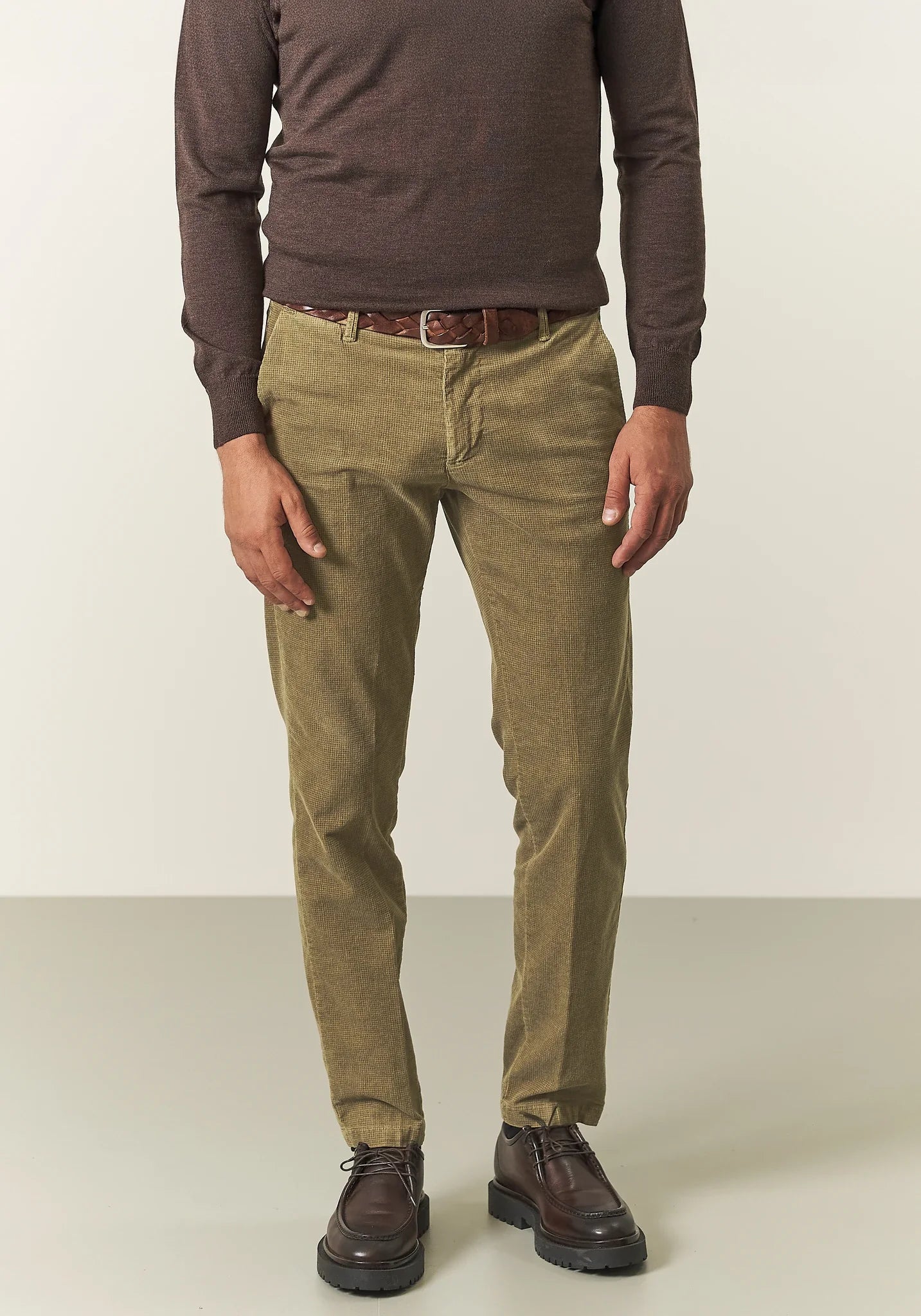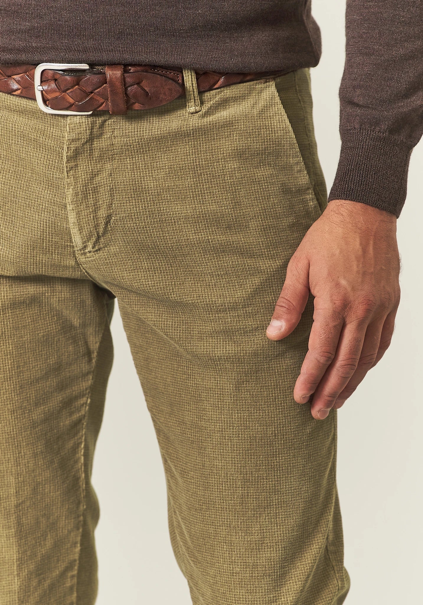 Slim-fit green jacquard moleskin trousers